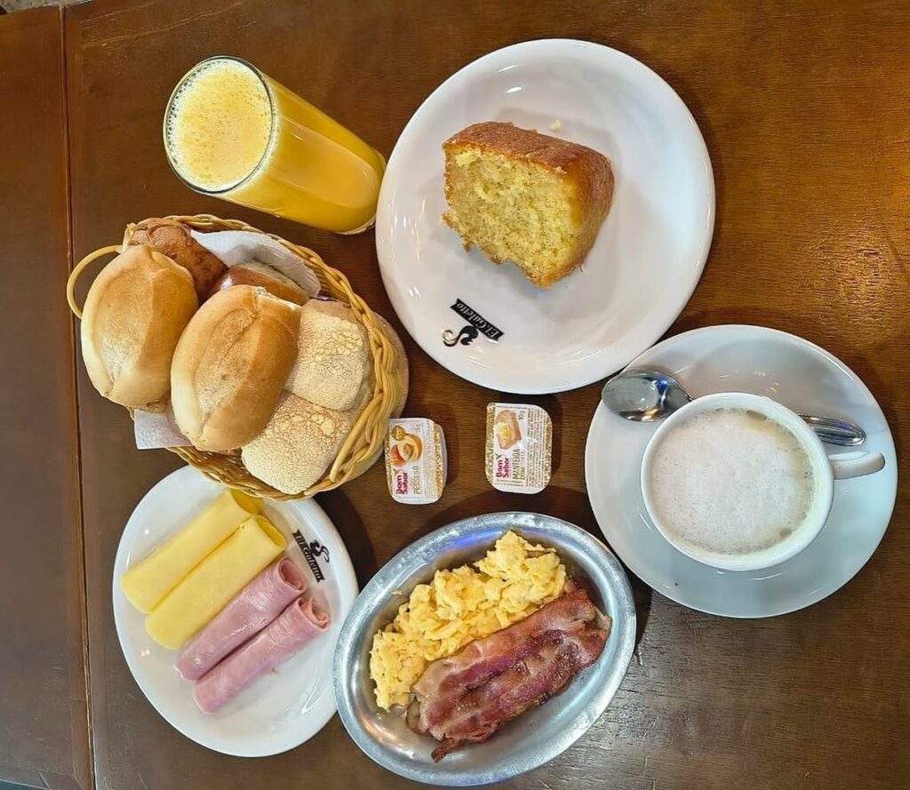 O restaurante El Galetto, em Copacabana, Zona Sul do Rio de Janeiro, oferece um café da manhã incrível, completo e com preço acessível. Ele custa R$ 79,90 e serve até duas pessoas.